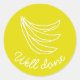 Funky colourful modern simple style of white banana on a pine yellow background. Whimscal and retro. Colourful and funky. Go bananas. Well done teaching sticker