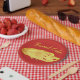 Paper Plate with a smiling, cartoon, funnel cake character. The words can be customised.