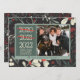 Third year is a charm, hope for 2021 custom photo card template with a dark, modern winter botanical graphics and seamless pattern.