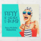 An outrageously funny and unique birthday party sparkling wine label for a fabulous woman celebrating her 50th Birthday, this design features a kitschy stylish woman in striped sunglasses and hair turban with a polka dot bag and striped towel, rocking her attitude. The humour is carried out in the bold text title "FIFTY IS THE NEW F-BOMB". Personalise the name with the fabulous Birthday Girl. The retro colour scheme of aqua, beige, navy and red adds to the fun of this design.