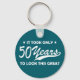 Keep your keys organized with a touch of humor using this custom 50th birthday keychain. This sturdy accessory features the witty quote It Took Only 50 Years To Look This Great in a clean and modern typography style. It makes a fantastic small gift or stocking stuffer for a friend, husband, or wife celebrating their big five zero. The high contrast design is easy to spot in a bag or pocket, serving as a daily reminder that fifty years of life have never looked better. It is a perfect keepsake to commemorate a milestone birthday every time you head out the door.