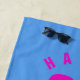 Modern beach towel with a funny, inspirational quote: "If you were a turtle you'd still be a teenager" featuring a colourful surfing turtle in cartoon style. Customise text and/or age.