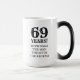 The man the myth the legend 69th Birthday party mug gift for men. Personalizable with your name and age. Age humour for home or office. Vintage sixty ninth Birthday gift idea for legendary dad, husband, boyfriend, uncle, best grandpa, brother, grandfather, godfather, step dad, friend, co worker, boss etc. Funny present for sixty nine year old guys. Masculine typography cup printed with fun quote for him. Customisable age. Make one for 60th 61st 62nd 63rd 64th 65th 66th 67th 68th 69th 70th etc. Custom 15oz drinkware for home or office. Black and white or other fun colour. Great for coffee, tea and other drinks.