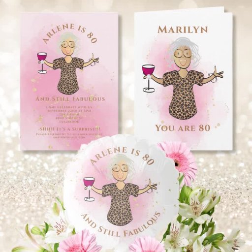 80 and Still Fabulous Funny Cartoon Birthday SuiteDesigned by Sheryl Will