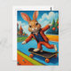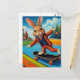 Funny Adorable Skateboarding Brown Rabbit Postcard