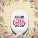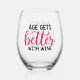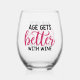 Funny age wine word art stemless wine glass