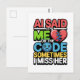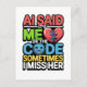 A witty AI design with the quote “AI said it’s me or the code, sometimes I miss her.” Perfect for programmers, coders, and AI enthusiasts who love tech humour. Great for showing off your passion for coding, artificial intelligence, and funny geek culture.