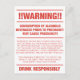 A great alcohol and pregnancy warning to wear on all occasions that's surely to spark some laughter from everyone in the crowd. "Warning!! Consumption of alcohol prior to pregnancy may cause pregnancy." lol