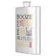 Funny alcohol euphemisms typographic design: booze, juice, grog, hard stuff, brew, hooch, hair o the dog, moonshine, sauce, humourous slang names for drink.