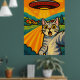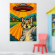 Funny Alien Cat UFO Abduction Cat Retro Pop Art Poster