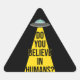 Funny Alien in UFO: Do You Believe In Humans? Triangle Sticker