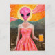 Funny Alien Lady in Pink With Orange Juice Postcard