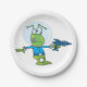 Funny Alien with Ray Gun Sci-Fi Space Invader Paper Plate
