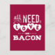 The design reads 'All YOu Need Is Love and Bacon' in a variety of fun beautiful fonts, making a funny humourous design for anyone who loves bacon.
