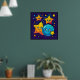 Funny and Cute Stars with The Moon in Space Poster