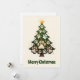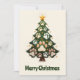 Funny Animal Paws Green Modern Christmas Tree Holiday Card