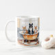 I like to buy and review my own work to ensure you get an outstanding product and I’m happy to give the Primary Colours Beach Football Mug 5 stars because it meets my expectations completely. Pleased with it I am. Zazzle mugs are well fabricated, microwave and dishwasher safe. And this yellow red and blue panoramic wraparound motif is sealed with a durable and sparkling Orca polished gloss glaze finish. It’ll never rub off! The size and energy of two jostling figures and a burly goal keeper fit the mug's circular shape well. There's momentum in the carousel effect as the two jostling figures repeat and move right around the mug and meet a burly goal keeper. Big sharp original images precisely drawn and delicately captured in blue and red with plenty of bright yellow! An ideal gift for anyone who plays ball! A fun gift for all beachball and football fans. A pair with the Retro Grey-Grain Beachball Player Mug. Available in two sizes and several styles including Black Ringer, Travelling, and Stern. Go have a peek!