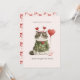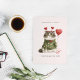 This funny Valentine card features an unimpressed cat bundled up in a cozy heart-patterned sweater, holding a Valentine balloon with very little enthusiasm. It’s the perfect card for couples who prefer humor over overly sentimental messages and appreciate a more realistic take on romance.