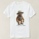 A white t-shirt featuring a funny customizable ape character dressed as a hiking explorer in meme style.