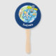 Funny astronaut in space and earth cartoon hand fan