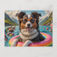 A funny Aussie on a float trip with lots of toys also floating downriver to play with AI generated art