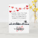 Design features an aeroplane flying over a city with a happy valentine's day text below it. Inside the card is a customisable option for a photo and message.