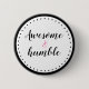 Funny button "Awesome and humble". Black and pink. Trendy script typography.