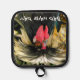 Having a bad hair day? Safely handle baking trays, cookie sheets and muffin tins from the oven with this pot holder with black trim that features the photo image of a funny looking chicken with bad hair. Select your pot holder backing style.