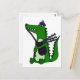 Funny green alligator is playing the bagpipes in this fun original art design.