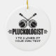 PLUCKOLOGIST. Humourous title for someone who loves plucking a banjo - and, who has a sense of humour. Black and white design is for him or for her, for adults and for kids. Makes a very funny gift for people who play banjos! Find more funny designs like this one at the Ologist Shop.