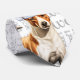 Woof art in soft faded grey on white sets off a very cute Basenji dog in a red holiday hat for the dog lover's holiday celebrations.
