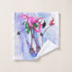 Funny Bath Towels with Pink Flamingo Skier