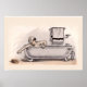 This vintage illustration of a man in a bath trying to reach the soap that's on the floor is a great piece of wall art for your bathroom.