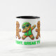 Get noticed at the Christmas office with this festive and funny mug, which features a row of identical gingerbread men. The streak of sameness is broken by the middle gingerbread man, who sports a sugary green costume and cool sunglasses while he's dabbing enthusiastically. Break the cookie cutter mould. Bid ciao to conformity. Dare to be different!