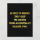 A humourous message emphasises the importance of being kind to nurses. Bold yellow text stands out against a black background, adding to the playful tone.