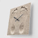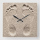 Here is a funny beach theme wall decor clock with a pair of footprints in the sand in a graphic design that looks like real sand from a distance and adds character and style to any room in your home. Designed as a novelty clock or timepiece that adds to a beach house.