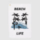 A funny beach wave illustration and palm trees. Perfect for everyone, who loves surfing and being at the beach.