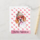 Funny Beagle Be My Valentine Dog Valentine's Day Holiday Postcard | Look at our cute hilarious Valentine's day dog holiday card! This adorable card features a cute dog with a party hat, funny big red glasses, white paws, and pink hearts. On the front has the saying "Be my Valentine". Whether you're sending it as a gift to a friend or family member who loves their dogs, this card makes a cute gift for all dog lovers!