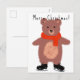 Funny bear on winter skates holiday postcard