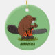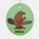 Funny beaver with chainsaw cartoon humour ceramic tree decoration