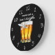 Funny men's wall clocks with a beer theme saying that is humourous and has an image of three beer glasses filled with it. Designed as a man cave wall decor clock or clock for a bar or bartender.