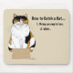 This funny cat illustration features a relaxed calico cat sitting inside a very small cardboard box against a soft beige background, paired with the humourous phrase “How to Catch a Cat.” Inspired by classic feline behaviour, the design captures the irresistible appeal boxes have for cats everywhere. The simple composition and warm neutral tones is a playful, relatable design created for cat lovers who appreciate everyday pet humour.