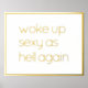 Beautiful, elegant, and simple real gold foil printed funny motivational Woke Up Sexy As Hell Again quote. This elegant, stylish, and trendy gold foil poster with a vintage, elegant, and chic minimalist typography script aesthetic is a perfect motivational, inspirational, and encouraging birthday gift.