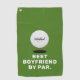 Our hilarious golf towel is not just another mundane piece of accessory. Featuring a striking green background, this towel flaunts a personalised golf ball with your significant other's name and initial. But it's the witty saying, 'best boyfriend by par' that steals the show. Get ready to tee off laughter with this perfect gift for your golf-loving boyfriend.