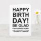 This card is great fun and good quality. I loved the humour inside and on the back. There is the opportunity to change the orientation of this card from landscape to portrait, which I did. It is relatively straightforward to amend the typeface to fit the new orientation. It was well packaged with no plastic. The printing on this card is excellent.