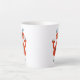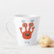 Cute monster personalised latte mug with a vector illustration of a cartoon character in orange colour with blue nails and eyelashes smiling happily showing its teeth and a customisable name.