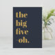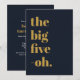 Celebrate your 50th birthday in style and with humour! On a navy blue background, the large gold typography on the front reads "The big five-oh", but this can be changed to any other Oh! milestone age. On the back, in a mix of gold and white typography, you can easily customise the template typography with the party details. Unique, fun and perfect for the big birthday celebration!