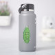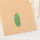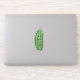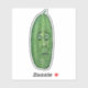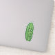 This vinyl sticker has a funny big green pickle with a stem and a face with surprised expression.