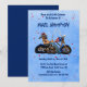 This Funny Biker Retirement Party Invitation is designed with a caricature biker riding an old bike. A fun way to celebrate the retirement of a family member, friend, or co-worker. The front text includes: the Full Name, Event Date and Time, Location and RSVP Details on a colourful blue background with dark blue print and accents and a matching dark blue reverse side. To personalise, simply insert your details into our easy template, replacing the sample text. This invitation is available in both print or download. Motor Bike, Biker, Funny, Retire, Retirement, Party.