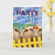 Funny Birthday Party till the Cows Come Home, paper greeting card with a photo and digital clip art of cows wearing party hats and streamers and confetti in the sky. Party Time! Art, image, and verse copyright © Shoaff Ballanger Studios, 2022.